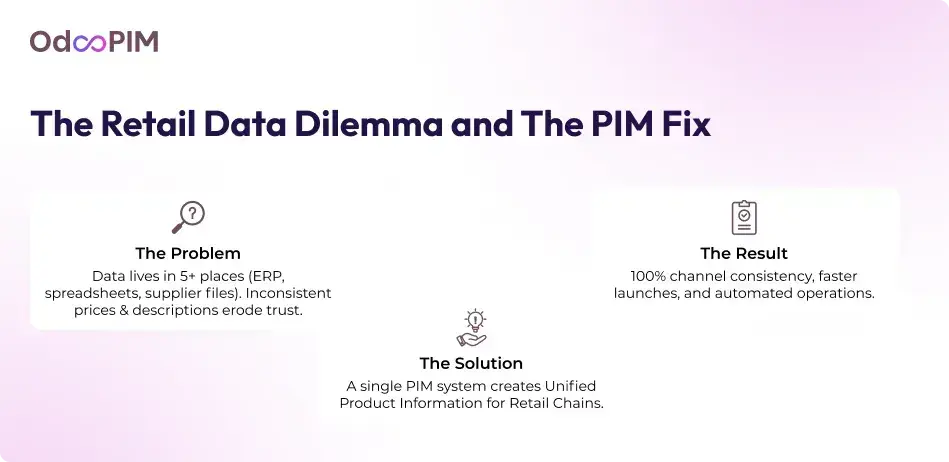 A PIM system like OdooPIM tackles these pain points head-on, enabling retail product data management software that powers multi-store product management and storefront product data synchronization. A PIM automates inventory and product data automation for retailers, ensuring location from PIM for brick-and-mortar stores to digital platforms displaying uniform, enriched content.